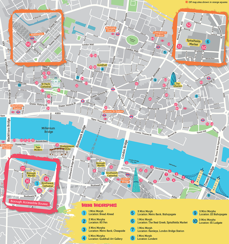 Everyone can enjoy this accessible art experience, discovering 56 spectacularly painted, unique giant Morph sculptures in iconic locations, around South Bank, London Bridge, and City of London.